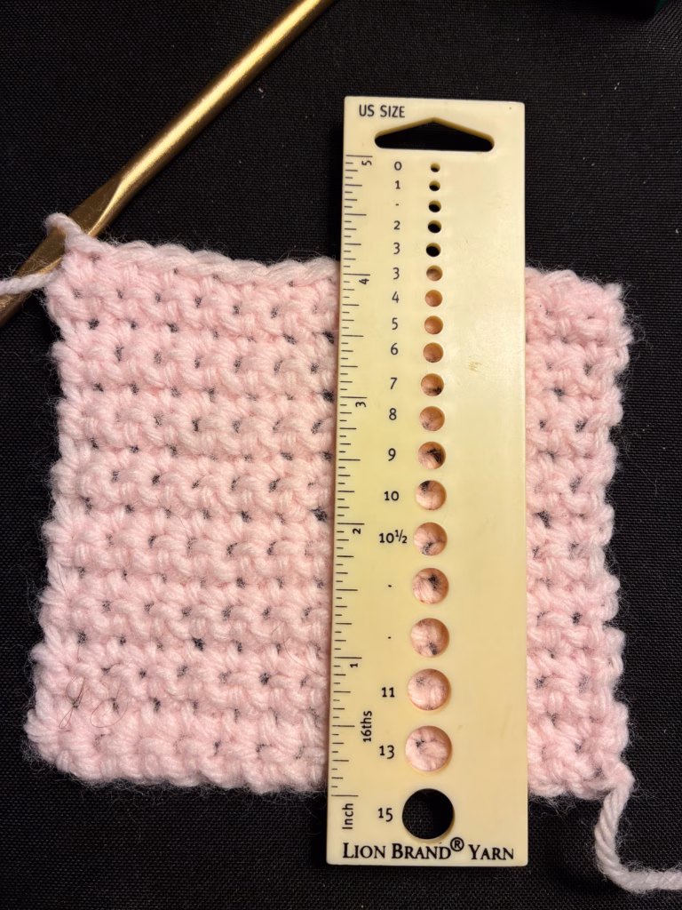4. Fasten off & measure. You should have a 4โ/10cm square.