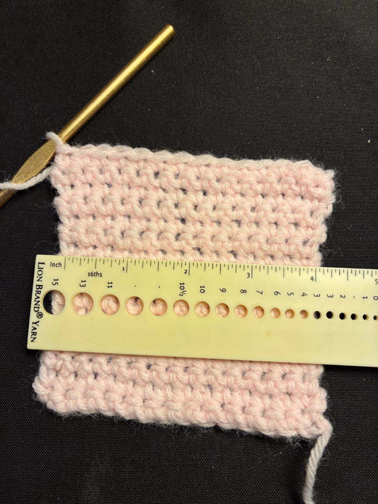 2. Never change the stitch count or row count in the gauge swatch pattern; only change the hook or needle size to get the correct square size for the way the pattern is written.